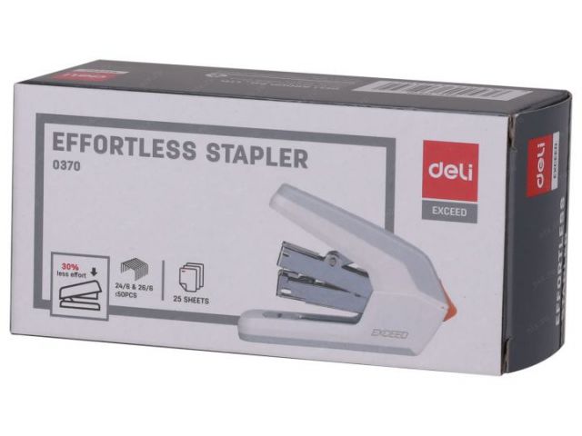 Степлер настольный Deli E0370white Exceed 24/6 26/6 (25листов) снижение усилия белый 50скоб коробка
