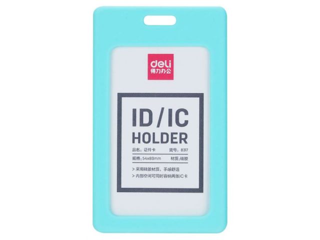 8317BLUE Бейдж для пропуска Deli 8317 l-blue 54х89мм вертикальный без крепления силикон голубой