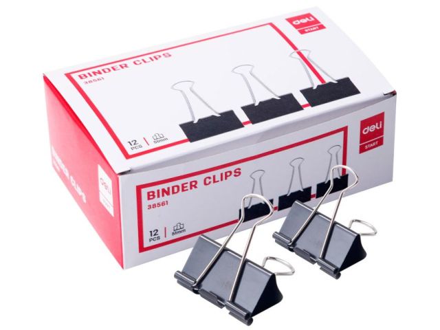 Зажимы Deli E38561 металл 51мм черный (упак.:12шт) картонная коробка