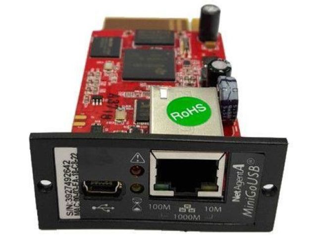 SNMP-карта DA806 (арт. CNDA806) предназначена для мониторинга состояния и управления ИБП по локальной вычислительной сети или интернет. Мониторинг, управление и конфигурация осуществляются через встроенный WEB-интерфейс, TelNet или NMS, с обеспечением автоматического корректного завершения работы подключенных к ИБП серверов и рабочих станций. SNMP-карта позволяет удаленно отслеживать значения входных и выходных параметров ИБП, уровня заряда АКБ, оповещать пользователя о событиях и авариях системы через встроенный WEB-интерфейс, по протоколу SNMP (в том числе посредством отсылки Trap-сообщений при возникновении нештатных ситуация) и через отправку сообщений по e-mail. Так же обеспечивается возможность удаленного управления ИБП (перезагрузка, активация тестов, вкл/выкл звуковое оповещение). Данная моделькарты поддерживает протоколы шифрования. Встроенный порт Mini-USB позволяет подключать внешние опциональные периферийные устройства.
