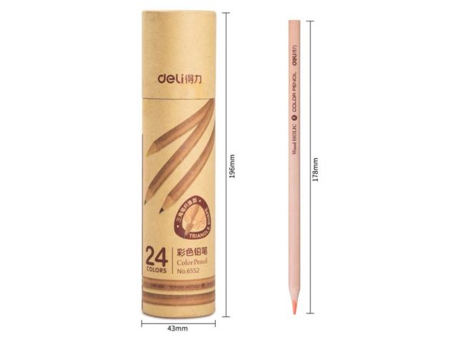 Карандаши цв. Deli 6552 трехгран. 24цв. карт.тубус