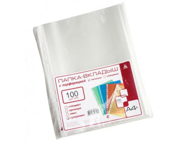 Папка-вкладыш Бюрократ СуперЛюкс -100G/25 глянцевые А4+ 100мкм (упак.:25шт)