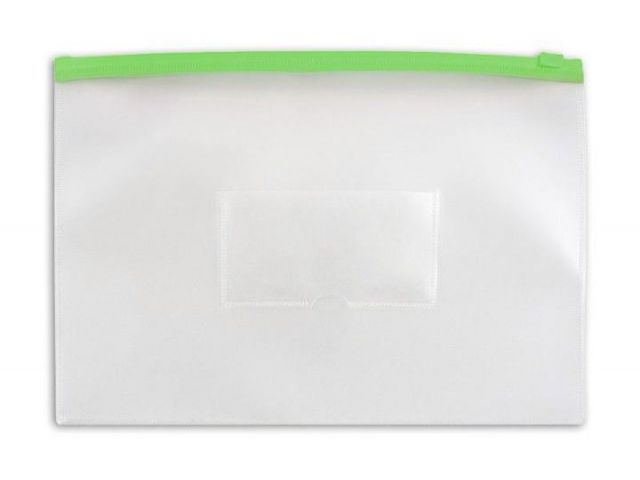 Папка на молнии ZIP Бюрократ -BPM4AGRN A4+ полипропилен 0.15мм карм.для визит. цвет молнии зеленый