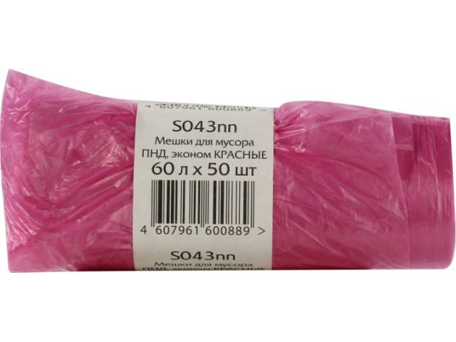 S043nn Пакеты мусорные 60л, красные в рулоне (уп.50шт)