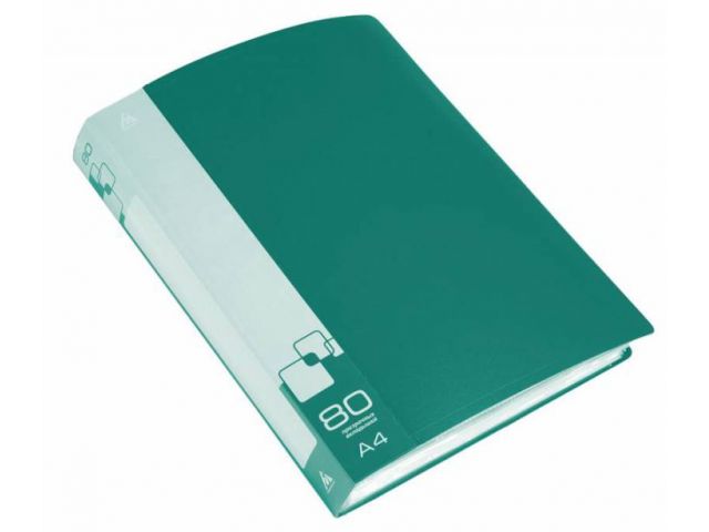 Папка с 80 прозр.вклад. Бюрократ -BPV80GRN A4 пластик 0.8мм торц.карм с бум. встав зеленый