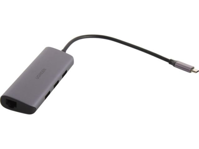 UGREEN 60718 USB3.0 3-port Hub + RJ45, подкл. USB-C