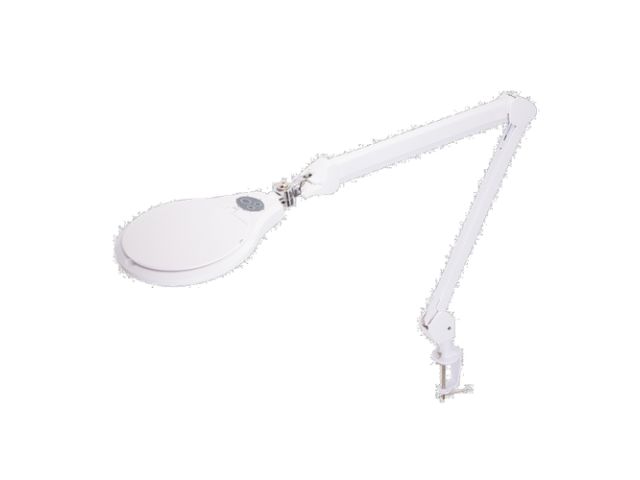 Лупа настольная REXANT предназначена для визуального увеличения различных мелких деталей или предметов. Используется во многих областях жизнедеятельности человека: косметологии, ногтевом сервисе, ювелирном деле и т.д. Форма изделия - круглая, цвет - белый. Оптическая сила линзы - 5 диоптрий, что обеспечивает увеличение в 2,25 раза. Устройство имеет следующие конструктивные преимущества: стеклянная линза размером 152 мм, бестеневая всесторонняя подсветка, модернизированный пантографический механизм, рабочий радиус регулировки 100 см, струбцинное крепление, экономичное энергопотребление, встроенный электронный блок управления. Фиксация устройства возможна в любом положении.На корпусе лупы располагаются кнопки, посредством которых регулируется яркость подсветки, а также крышка, защищающая линзу от повреждений и пыли.72 SMD светодиода (LED), расположенных по кругу, обеспечивают ярое свечение.