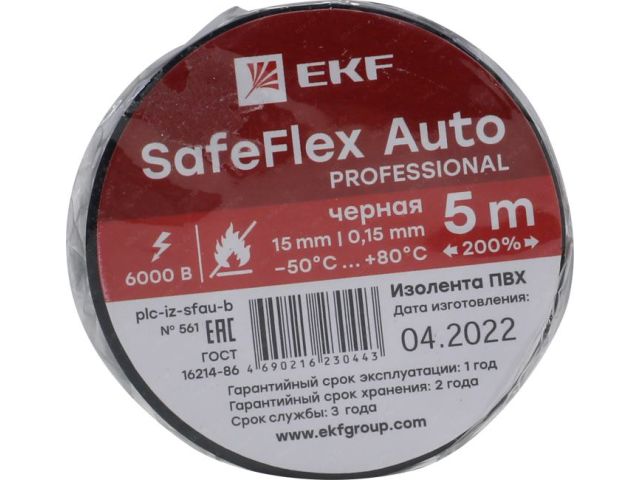 EKF SafeFlex plc-iz-sfau-b Изолента ПВХ (чёрная, 15x0.15мм, 5м)