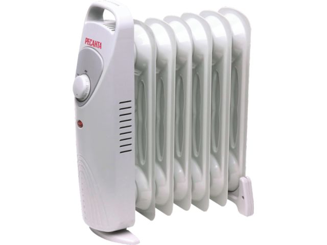 | Масляный радиатор РЕСАНТА ОММ-7Н предназначен для обогрева воздуха в небольших помещениях. Особенности радиатора: Термостат регулируется вручную при помощи удобной ручки. Передняя и задняя опоры обеспечивают устойчивое положение прибора во время работы. Световой индикатор для контроля рабочего состояния масляного радиатора. Для удобства перемещения прибор есть удобная ручка. Преимущества: Современный дизайн; Включатель со световым индикатором; Термостат; Механическое управление; Малые габариты, небольшой вес. Комплектация: Масляный радиатор - 1 шт. Опоры - 2 шт. Руководство по эксплуатации - 1 шт. Всё о масляных радиаторах Как устроен масляный радиатор? Масляный нагреватель представляет собой герметично закрытую металлическую ёмкость, своей формой напоминающую радиатор центрального отопления, заполненную минеральным маслом. Внутри ёмкости размещаются нагревательные ТЭНы, расположенные в нижней части корпуса и полностью погруженные в масло. ТЭНы разогреваются и передают свою тепловую энергию маслу, которое, в свою очередь, нагревает ребристый корпус масляного радиатора. Поскольку поверхность корпуса масляного нагревателя имеет сравнительно невысокую (не превышает 60 С) температуру, нагреватели такого класса практически не сушат воздух и не сжигают находящуюся в нем пыль. Особенности конструкции масляного нагревателя Практически все современные радиаторы оснащены термостатом, плавным регулятором температуры, системой защиты от перегрева, световой индикацией, а также двух- или трех-позиционным переключателем режима работы. Такой переключатель позволяет выбрать одну из нескольких степеней мощности, каждой из которых соответствует свой ТЭН. Это позволяет добиваться оптимальной температуры в помещении и заодно экономить электроэнергию. Как подобрать мощность масляного радиатора? При выборе масляного радиатора нужно знать следующее правило: на обогрев каждых 10 м2 комнаты с высотой потолка 3 метра, необходим 1 кВт энергии нагревателя. Кроме того, если в помещении, где установлен масляный радиатор, имеются два окна или одна из стен внешняя, то расход тепла увеличивается ещё на 0.2кВт на 1 м2. Учитывая тот факт, что мощность масляного радиатора ограничивается 3 кВт, можно сделать вывод, что максимальная площадь обогреваемого помещения для масляных нагревателей ограничивается 25-30 м2. Сегодня существует огромное количество всевозможных масляных радиаторов, которые отличаются друг от друга не только мощностью, но и всевозможными дополнительными приспособлениями. Вентилятор, дополнительная крышка для сушки белья, эффект камина. Все это существенно повышает цену на масляный радиатор, но так ли они нужны? Ведь основная функция радиатора - простой обогрев воздуха в помещении. Термостат сейчас имеется почти в каждом масляном радиаторе. Без сомнения, он существенно облегчает его эксплуатацию. Радиатору задаётся оптимальный для данного помещения температурный режим, и он включается и выключается в соответствии с температурой окружающего воздуха. Это очень удобно. С помощью термостата масляный радиатор поддерживает стабильную температуру в квартире и тем самым экономит электроэнергию. Компания Ресанта выпускает модели радиаторов мощностью: 0.7; 1.0; 1.5; 1.9; 2.0; 2.4; 2.5; 2.9 Вт. |