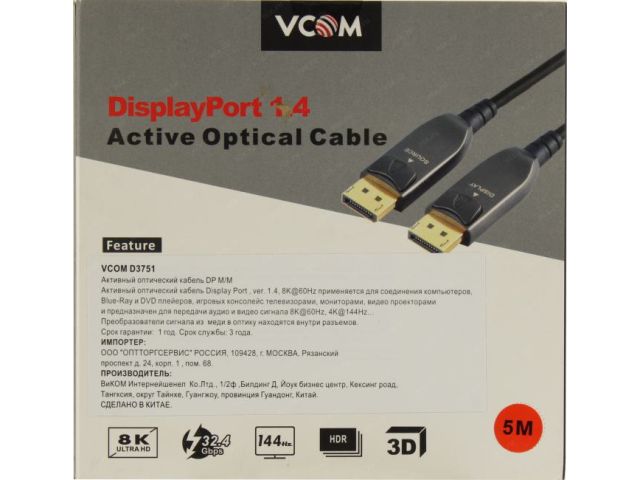 | Оптический активный кабель DisplayPort - DisplayPort VCOM D3751-5м 5 м. |