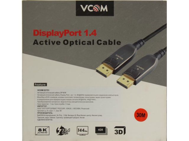 | Оптический активный кабель DisplayPort - DisplayPort VCOM D3751-30м 30 м. |
