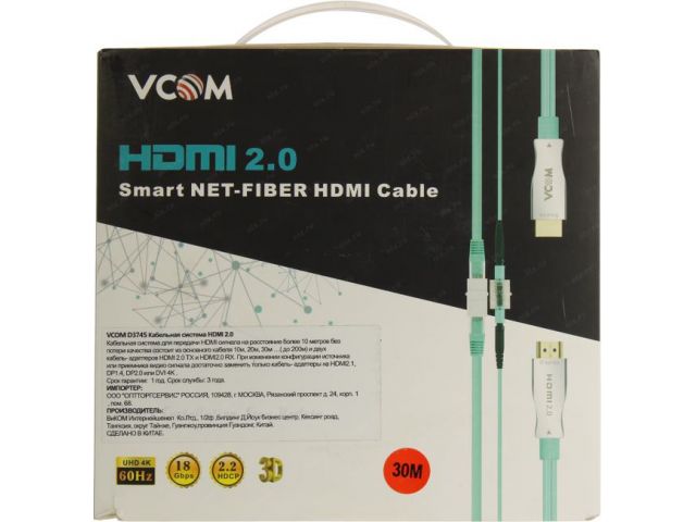 VCOM D3745-30м Кабель Smart NET-FIBER HDMI to HDMI (19M -19M)30м ver2.0