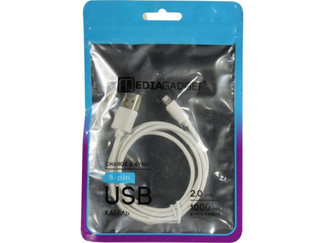Mediagadget MG8PLT11PWT  Кабель USB2.0 AM-- Lightning 1м