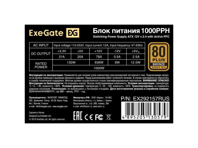 | Блок питания ExeGate 1000PPH 1000 Вт |