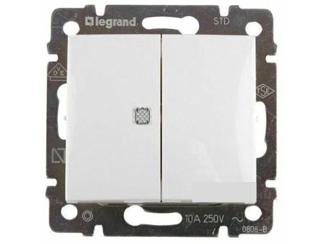 Выключатель Legrand Valena Classic Выключатель двухклавишный с индикацией - Valena - 10 AX - 250 В~ - белый