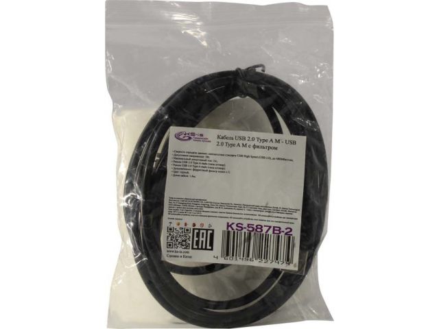 KS-is KS-587B-2 Кабель USB2.0 AM-- AM 1.8м 2 фильтра