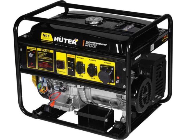 Бензиновый генератор Huter DY8,0LX - портативная компактная электростанция, обеспечивающая электроснабжение бытовой техники и профессионального оборудования, питающегося от стандартной сети 220 Вольт. Это самый выгодный бензиновый электрогенератор, с оптимальными техническими характеристиками и низким расходом топлива. Модель DY8,0LX может использоваться в качестве резервного источника питания для частных домов и квартир, а также как постоянная станция, обеспечивающая работу электроприборов в полевых условиях. Генерирующая установка имеет синхронный тип устройства и щёточный механизм. Комплектация: Бензиновый электрогенератор. Силовая вилка 32 А Свечной ключ. Вороток либо отвёртка (в зависимости от модели) Провода и детали лотка аккумуляторной батареи (для моделей с X в названии) Комплект резиновых опор с гайками Ключ электростартера (для моделей с обозначением X) Паспорт (руководство по эксплуатации) Бензиновая электростанция Huter DY8,0LX оборудована мощным одноцилиндровым четырёхтактным двигателем внутреннего сгорания, мощностью 15 л.с. Запуск производится ручным стартером или электростартером от АКБ (*аккумулятор не входит в комплектацию и приобретается отдельно). Для удобства транспортировки, отдельно можно приобрести колёса и ручки. Электрогенератор DY8,0LX имеет рабочую мощность 6.5 кВт, а также все виды защиты - от перегрузки, короткого замыкания и низкого масляного уровня.