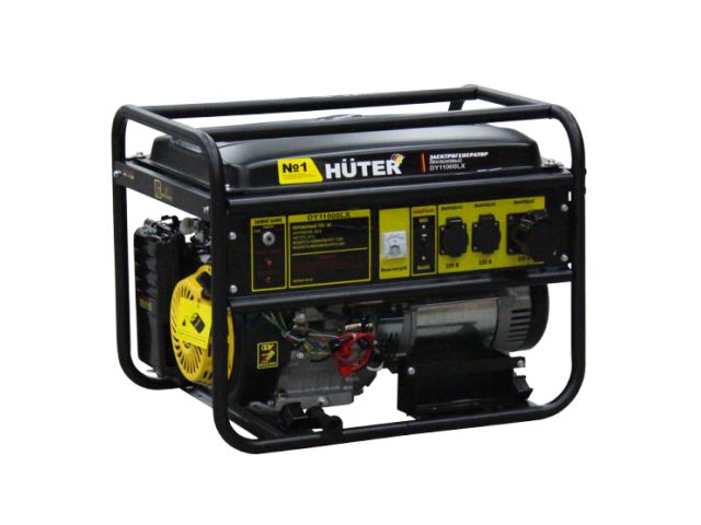| Бензиновый генератор Huter DY11000LX - портативная компактная электростанция, обеспечивающая электроснабжение бытовой техники и профессионального оборудования, питающегося от стандартной однофазной сети 220 Вольт. Это самый выгодный бензиновый электрогенератор, с оптимальными техническими характеристиками и низким расходом топлива. Модель DY11000LX может использоваться в качестве резервного источника питания для частных домов и квартир, а также как постоянная станция, обеспечивающая работу электроприборов в полевых условиях. Генерирующая установка имеет синхронный тип устройства и щёточный механизм. Комплектация: Бензиновый электрогенератор. Силовая вилка 32 А Свечной ключ. Вороток либо отвёртка (в зависимости от модели) Провода и детали лотка аккумуляторной батареи (для моделей с X в названии) Комплект резиновых опор с гайками Ключ электростартера (для моделей с обозначением X) Паспорт (руководство по эксплуатации) Бензиновая электростанция Huter DY11000LX оборудована мощным одноцилиндровым четырёхтактным двигателем внутреннего сгорания, мощностью 19 л.с. Запуск производится ручным стартером или электростартером от АКБ (аккумулятор не входит в комплектацию и приобретается отдельно). Для удобства транспортировки, отдельно можно приобрести колёса и ручки. Электрогенератор DY11000LX имеет рабочую мощность 8,5 кВт, а также все виды защиты - от перегрузки, короткого замыкания и низкого масляного уровня. |