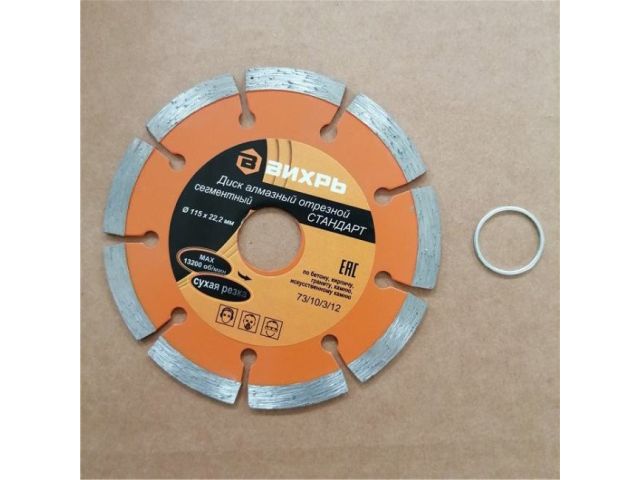 73/10/3/12 Диск алмазный отрезной сегментный СТАНДАРТ, 115 х 22,2 мм, сухая резка Вихрь