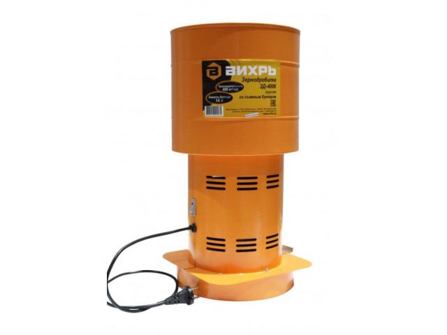 | Зернодробилка ВИХРЬ ЗД-400К предназначена для переработки всех видов сухого фуражного зерна, включая масленичные культуры и другой подобной сельскохпродукции при подготовке кормов для животных и птиц. В данной модели ёмкость бункера составляет 14 литров, производительность 400 кг/час, продолжительность работы не более 6 часов, частота вращения ножа 12000 оборотов в минуту. Тип электродвигателя: однофазный коллекторный. Первый класс электробезопасности. Принцип работы зернодробилки ВИХРЬ основан на измельчении зерна ножом и пробивании его через сито. Зернодробилка состоит из трех основных частей: загрузочная камера, моторный отсек и камера измельчения. Подготовка к работе Подготовленную пустую тару (ведро, флягу или любую другую емкость для измельченной массы) установить на горизонтальной поверхности; Подготовить зерно для дробления: исключить наличие инородных тел, камней, металлических включений и т.д. Рекомендуется просеять зерно через сито с ячейками 10х10 мм. Зерно с повышенной влажностью просушить; Разместить зернодробилку на приготовленной таре; Установить выключатель в положение «О»; Подключить вилку шнура питания к сети. Порядок работы Закрыть заслонку и наполнить бункер зерном, переключить выключатель в рабочее положение, запустить изделие. После набора двигателем оборотов (2сек.) открыть заслонку на 3/4 площади; Во время работы следить, чтобы уровень измельченной массы в засыпной таре не доходил до нижнего сита, не допускать работы изделия на холостом ходу более 5 с. После завершения работы необходимо полностью выработать зерно; закрыть заслонку; выключить изделие, нажав на клавишу выключателя со стороны «О» и отсоединить вилку шнура от розетки; Режим работы продолжительный, рекомендуется делать перерыв на 5-10 мин через каждый час работы; Комплект поставки: Зернодробилка - 1 шт. Руководство по эксплуатации - 1 шт. Коробка упаковочная - 1 шт. |