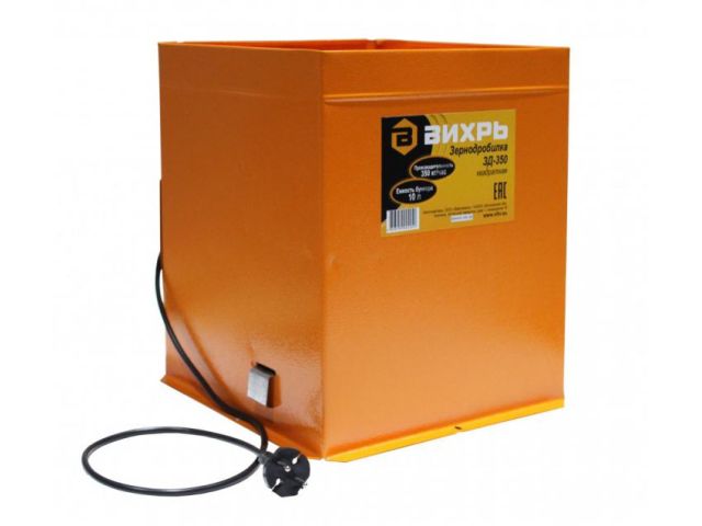 | Зернодробилка ВИХРЬ ЗД-350 предназначена для переработки всех видов сухого фуражного зерна, включая масленичные культуры и другой подобной сельскохпродукции при подготовке кормов для животных и птиц. В данной модели ёмкость бункера составляет 10 литров, производительность 350 кг/час, продолжительность работы не более 6 часов, частота вращения ножа 12000 оборотов в минуту. Тип электродвигателя: однофазный коллекторный. Первый класс электробезопасности. Принцип работы зернодробилки ВИХРЬ основан на измельчении зерна ножом и пробивании его через сито. Зернодробилка состоит из трех основных частей: загрузочная камера, моторный отсек и камера измельчения. Подготовка к работе Подготовленную пустую тару (ведро, флягу или любую другую емкость для измельченной массы) установить на горизонтальной поверхности; Подготовить зерно для дробления: исключить наличие инородных тел, камней, металлических включений и т.д. Рекомендуется просеять зерно через сито с ячейками 10х10 мм. Зерно с повышенной влажностью просушить; Разместить зернодробилку на приготовленной таре; Установить выключатель в положение «О»; Подключить вилку шнура питания к сети. Порядок работы Закрыть заслонку и наполнить бункер зерном, переключить выключатель в рабочее положение, запустить изделие. После набора двигателем оборотов (2сек.) открыть заслонку на 3/4 площади; Во время работы следить, чтобы уровень измельченной массы в засыпной таре не доходил до нижнего сита, не допускать работы изделия на холостом ходу более 5 с. После завершения работы необходимо полностью выработать зерно; закрыть заслонку; выключить изделие, нажав на клавишу выключателя со стороны «О» и отсоединить вилку шнура от розетки; Режим работы продолжительный, рекомендуется делать перерыв на 5-10 мин через каждый час работы; Комплект поставки: Зернодробилка - 1 шт. Руководство по эксплуатации - 1 шт. Коробка упаковочная - 1 шт. |