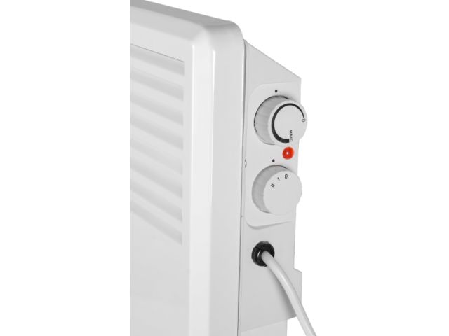 Конвектор - электрический отопительный прибор для обогрева помещений. Холодный воздух, находящийся в нижней части комнаты на уровне ног, проходит через нагревательный элемент конвектора, который находится в нижней части корпуса. Увеличиваясь в объеме в момент нагрева, теплый поток устремляется вверх через жалюзи выходной решетки и плавно распространяется по комнате в процессе естественной конвекции.