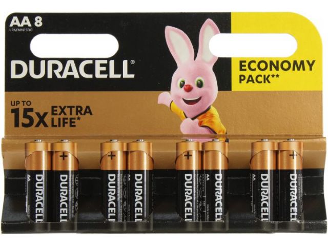 Duracell MN1500-8 (LR6) Size AA, 1.5V,щелочной (alkaline)  уп. 8 шт