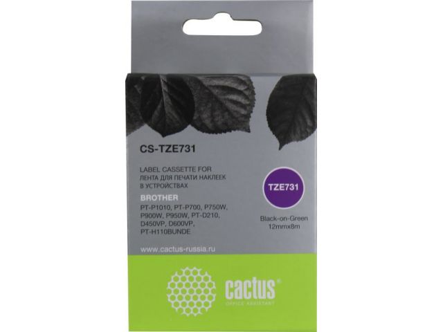 Cactus CS-TZE731 для этикеток (12мм, черный на зеленом) для Brother PT-P1010/P700/P750W/P900W/P950W/D210/D450VP