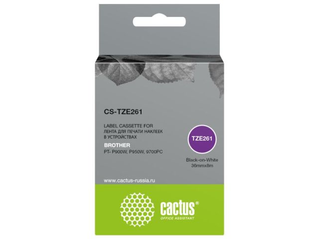 Картридж ленточный Cactus CS-TZE261 TZe-261 черный для Brother PT- P900W, P950W, 9700PC