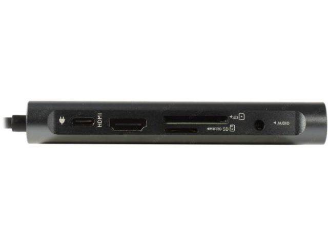 | Многопортовый цифровой AV-адаптер USB-C оснащен видеовыходом HDMI и VGA, а также тремя USB 3.0 Type A портами, дублирующим USB Type C разъемом, гигабитной сетевой картой, аудио-выходом и слотами для карт памяти типа SD и microSD. При использовании данного адаптера появляется возможность подключать монитор или телевизор по HDMI или VGA, использовать USB-накопители, подключать устройство к сети патч-кордом, одновременно заряжать ноутбук (до 100 Вт по USB PD2.0) и пользоваться картами памяти (до 128 Гб). Переходник с USB Type C на HDMI/VGA предназначен для устройств с разъёмом USB Type C, в которых интегрирован интерфейс DisplayPort, например, Apple MacBook 12 или Google Chromebook Pixel 2, а также некоторые материнские платы и ноутбуки с универсальным портом USB Type C/DisplayPort alternate mode. |