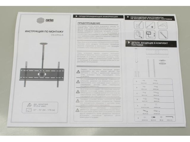 Cactus CS-CP04-R потолочный наклонно-поворотный кронштейн (VESA700x400, 37-70 , 81.6кг)