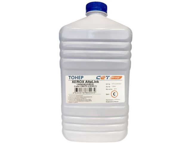 Тонер Cet CE08-C CET111040630 голубой бутылка 630гр. для принтера XEROX AltaLink C8045/8030/8035, Color C60/70