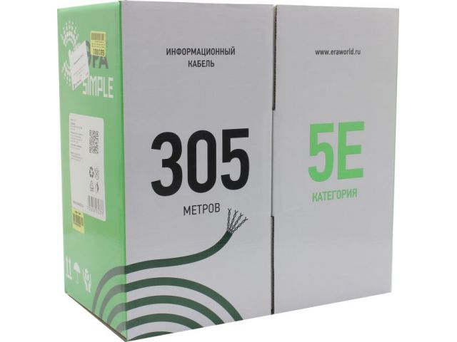 Кабель UTP 4 пары кат.5e бухта 305м ЭРА Simple UL-4-PE  для внешней прокладки