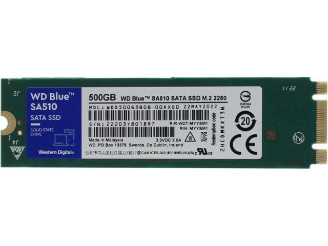 SSD 500 Gb M.2 2280 B&M 6Gb/s WD Blue SA510 WDS500G3B0B