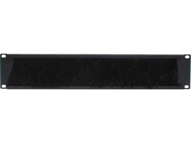 Металлический кабельный органайзер высотой 2U с щеточным вводом позволяет укладывать коммутационные шнуры и скрывать излишки кабеля с задней стороны патч-панелей, оставляя открытым поле коммутации.