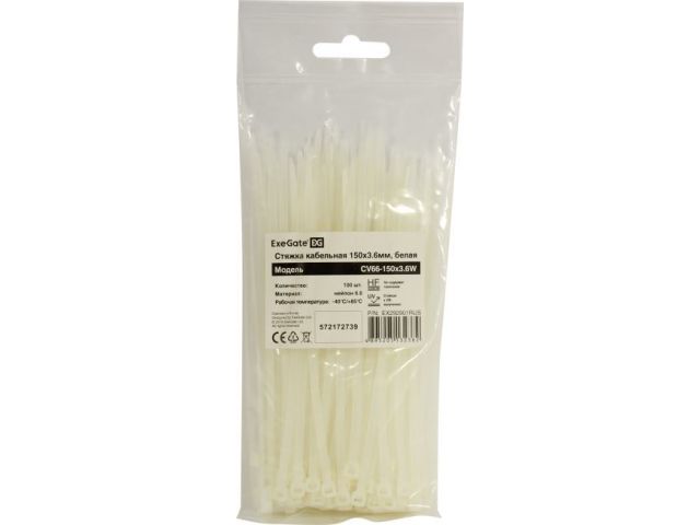 Exegate CV66-150x3.6W Стяжка нейлоновая, неоткрыв. белая, 150мм, уп-ка 100 шт EX292901RUS