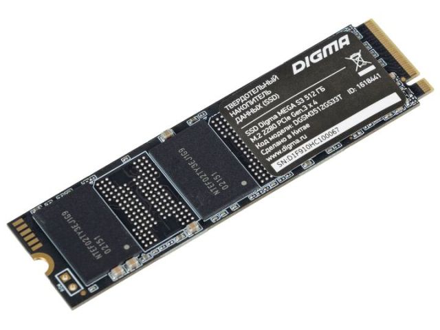 SSD Digma PCI-E x4 512Gb DGSM3512GS33T MEGA S3 M.2 2280