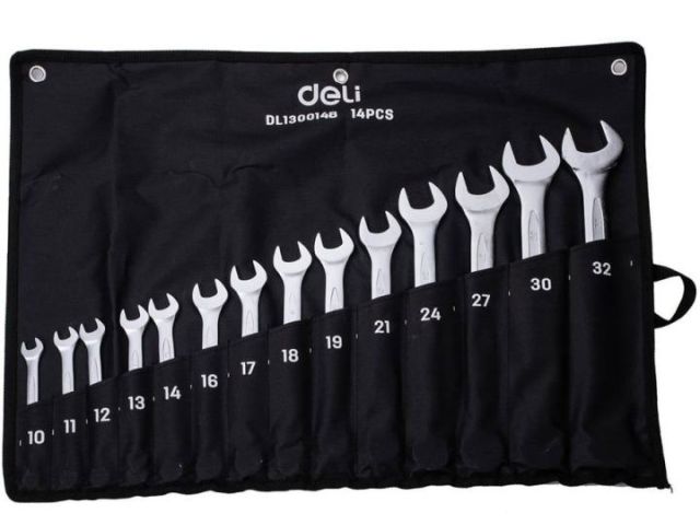 DL130014B Deli Набор комбинированных гаечных ключей 14 шт Deli DL130014B Спецификация: 10 мм, 11 мм, 12 мм, 13 мм,