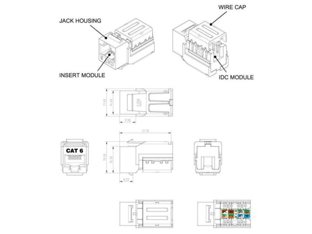 222453 Hyperline KJNE-8P8C-C6-90-BK Вставка Keystone Jack RJ-45(8P8C), категория 6, 110 IDC, заделка с помощью NE-TOOL,