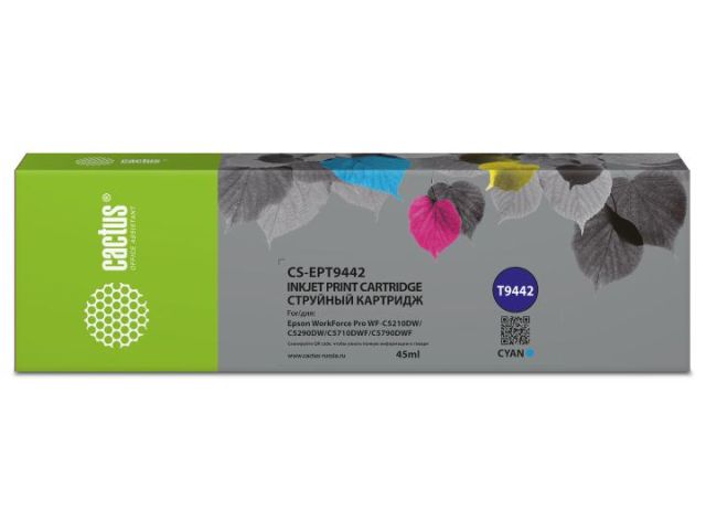 Картридж струйный Cactus CS-EPT9442 T9442 голубой (45мл) для Epson WorkForce WF-C5290DW/WF-C5790DW