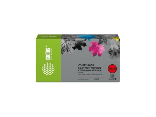 Картридж струйный Cactus CS-PFI320BK черный (300мл) для Canon imagePROGRAF TM-200/TM-200 MFP L24ei/TM-205/TM-300