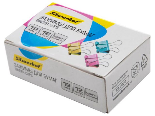 Silwerhof  422532 Зажимы для бумаг (19мм, уп-ка 12шт)