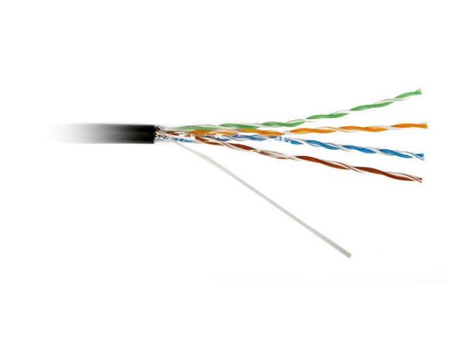 Кабель UTP 4 пары кат.5e катушка 500м Hyperline UUTP4-C5E-S24-SW-OUT-PE-BK-500 для внеш. прокладки, с тросом