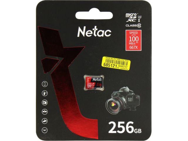 Карта памяти Netac Pro NT02P500PRO-256G-S microSDXC A1, V30, UHS-I Class 3 (U3) 256 ГБ