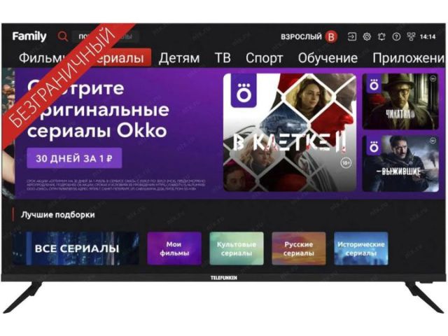 TELEFUNKEN TF-LED43S90T2SU UHD SMART безрамочный