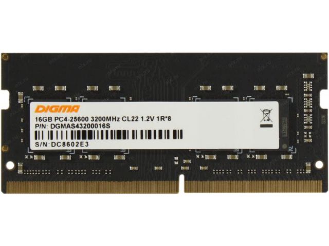 Digma DGMAS43200016S DDR4 SODIMM 16Gb PC4-25600  CL22 (for NoteBook)