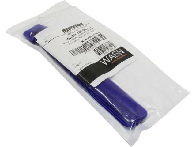 Hyperline WASN-180-BL-10 Стяжка-липучка (180x15мм, уп. 10шт, синий)