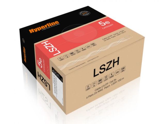 243609 Hyperline UUTP4-C5E-P24-IN-LSZH-WH-100 (100 м) Кабель витая пара, неэкранированная U/UTP, категория 5e, 4 пары (