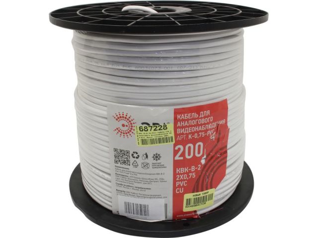 ЭРА K-0.75-PVC Кабель для аналогового видеонаблюдения КВК-В-2, белый, катушка 200м