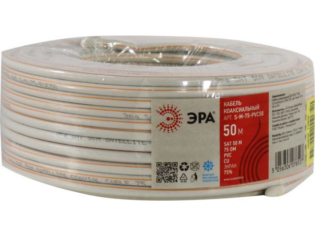 Кабель коаксиальный ЭРА S-M-75-PVC50 Медь 50 метров